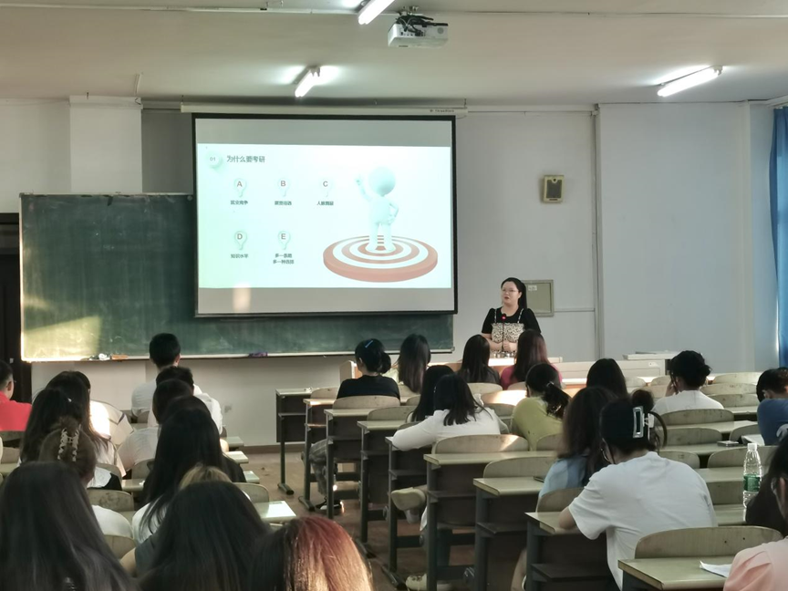 分享会伊始,3位已考取研究生的学姐从自身考研经历出发,围绕院校和专业选择、备考规划、学习方法、心态调整等方面展开分享,引导同学们对于考研备考有了一个清晰的认知,她们详细地讲解了英语、政治和专业课的学习方法和经验。此外,她们指出考研是一场持久战,同学们要在考研期间放松心态,学会调整心态,保持自己的节奏。
